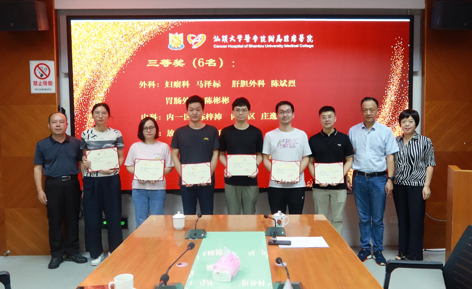 提高病历质量 保障医疗安全 为进一步提高医疗质量,在医师节来临之际,在医务科的组织下,我院开展优秀疑难病例讨论记录和术前讨论记录评比活动。本次评比专家包括外科专家组、内科专家组、放疗科专家组、医务科和质管科。 全院各临床科室积极动员,最终共提供37份病历参加评审。经专家评审,最终结果如下: 最终一等奖由郑少鹏、蔡春花、詹益州、蔡泽曼4名医师获得、二等奖由林怀泰、林树耿和庄洁菌3 名医师获得、三等奖 由马泽标、陈斌烈、陈彬彬、陈梓沛、庄逸谢和黄瑞虹 6 名医师获得
