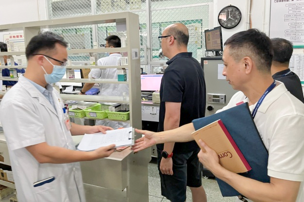 药品科赖耿科长带队前往住院药房实地检查,对药品储放管理、药品验收区的改善提出了宝贵的意见和建议。