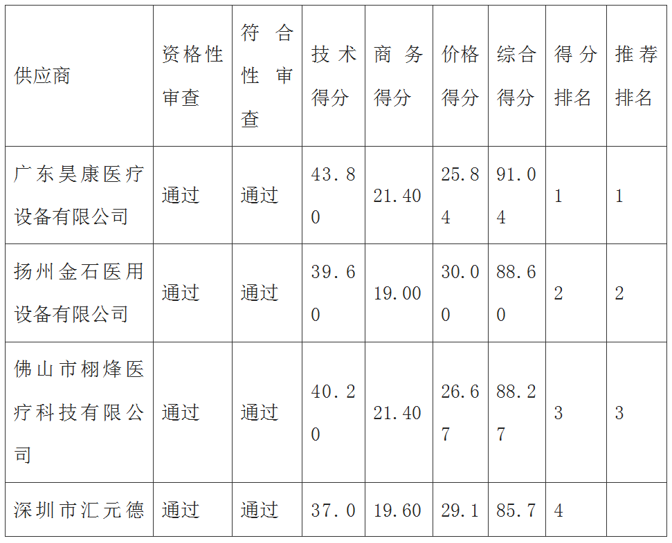 手动病床采购项目结果公告