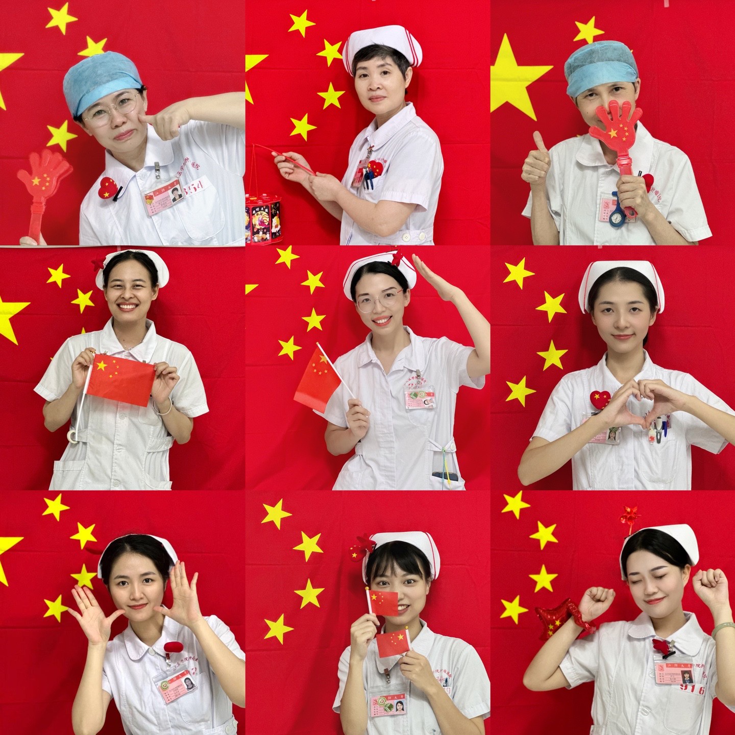 活动现场,大家们跃跃欲试、积极互动,一旦有人猜出谜底,其他人便会开心地拍手叫好,现场气氛十分融洽。 浓厚氛围送祝福 此外,在护士长的带领下,暖小护们齐心协力,为病区布置了许多美轮美奂的装饰品,病房的门框上的国旗、走廊上的纸扇,每个人帽子上晃动的国旗夹子……共同打造了一个富有浓浓节日气氛的病房环境。