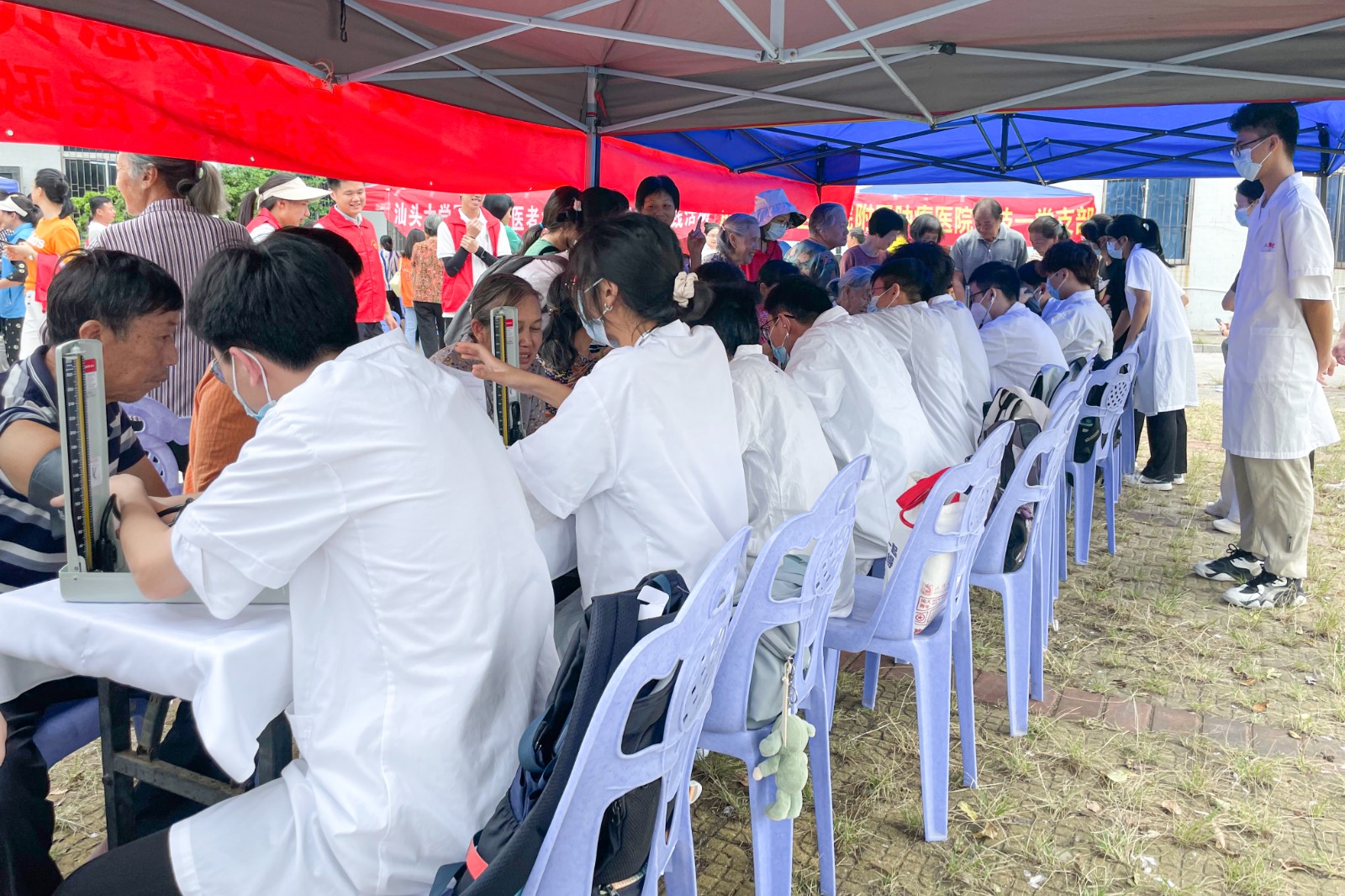 为贯彻广东省百校联百县助力“百县千镇万村高质量发展工程”行动(以下简称“双百行动”) ,帮扶南澳县深澳卫生院提高基层医务人员肿瘤防治知识,倡导老百姓健康生活方式,扎实推动“双百行动”落地落实,10月14日上午, 肿瘤专家团队赴南澳县深澳镇金山村开展大型送医送药大型义诊暨免费无痛胃镜筛查宣传活动。 本次活动由李嘉诚基金会汕头大学医学院公益办、 和第二附属医院联合举办,肿瘤医院头颈外科郭海鹏主任医师、放疗科伍方财副主任医师、营养科范鸣旭主治医师、许镒洧主任技师等14名医务人员参加活动。