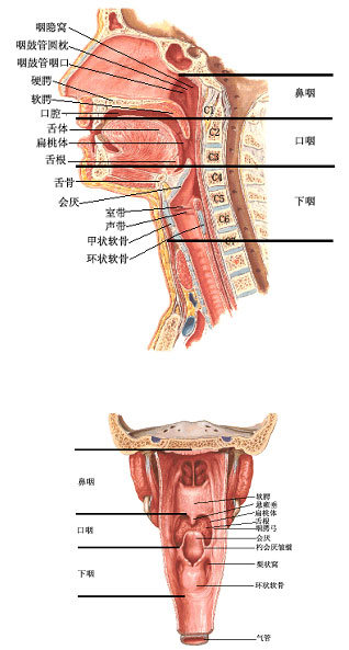 鼻咽癌是指发生于鼻咽腔顶部和侧壁的恶性肿瘤。鼻咽癌又被称为“广东癌”,意即该病在中国广东省最为常见。鼻咽腔是深藏在鼻腔后方、口腔上方、头颅中央的一个立方体腔室,与我们的鼻孔、耳道、口腔是相通的(见下图)。因鼻咽部位置隐蔽,容易误诊和漏诊。