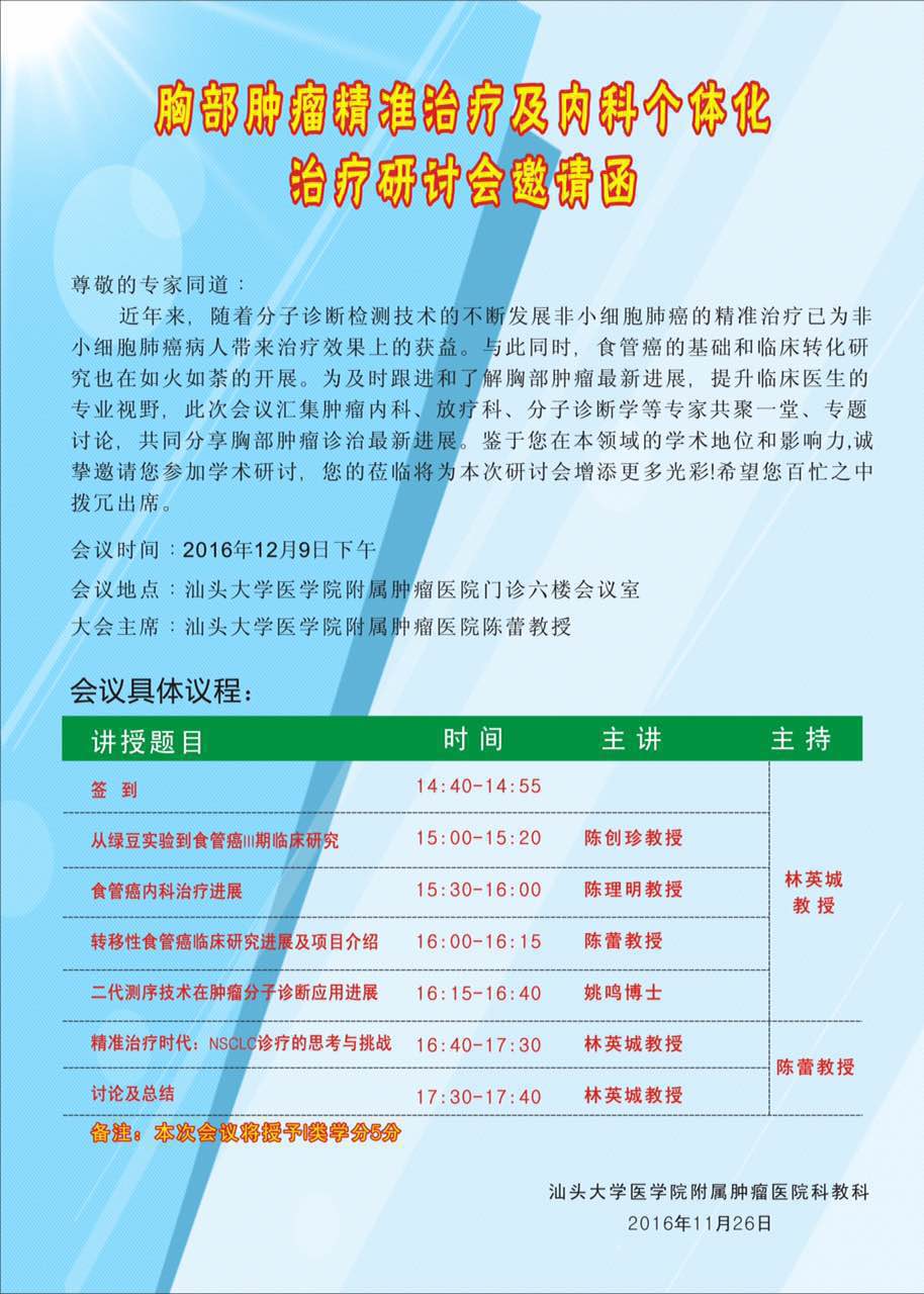 胸部肿瘤精准治疗及内科个体化治疗研讨会邀请函