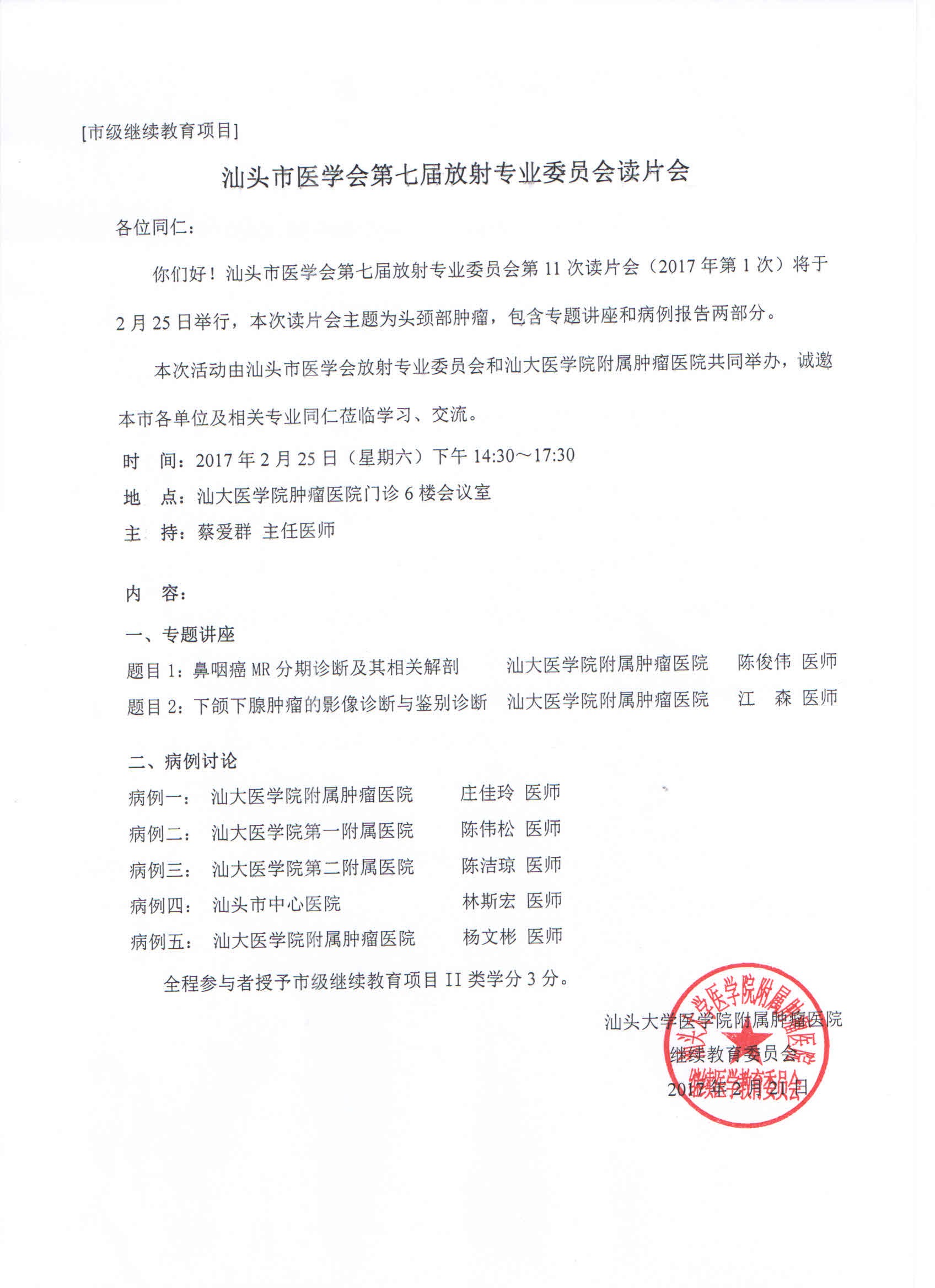市级继续教育项目:汕头市医学会第七届放射专业委员会读片会