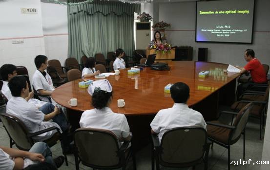 应张国君院长邀请,美国德州大学西南医学中心(University of Texas Southwestern Medical Center)癌症影像学专家刘莉博士于7月23-24日来我院交流访问。刘莉博士参观了医学院肿瘤研究中心和我院肿瘤实验室,并做了题为Innovative in vivo optical imaging---Dynamic Bioluminescent and Fluorescence Imaging to Assess Vascular Targeting Agents的学术报告。其间与我院的各学科专家及青年医生就我院和德州大学西南医学中心的肿瘤研究工作中各自的科研特色进行了交流,并就发挥双方资源优势开展科研合作方面进行了探讨。