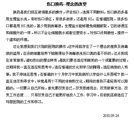 伊利沙伯医院学习——林韵随笔(一)