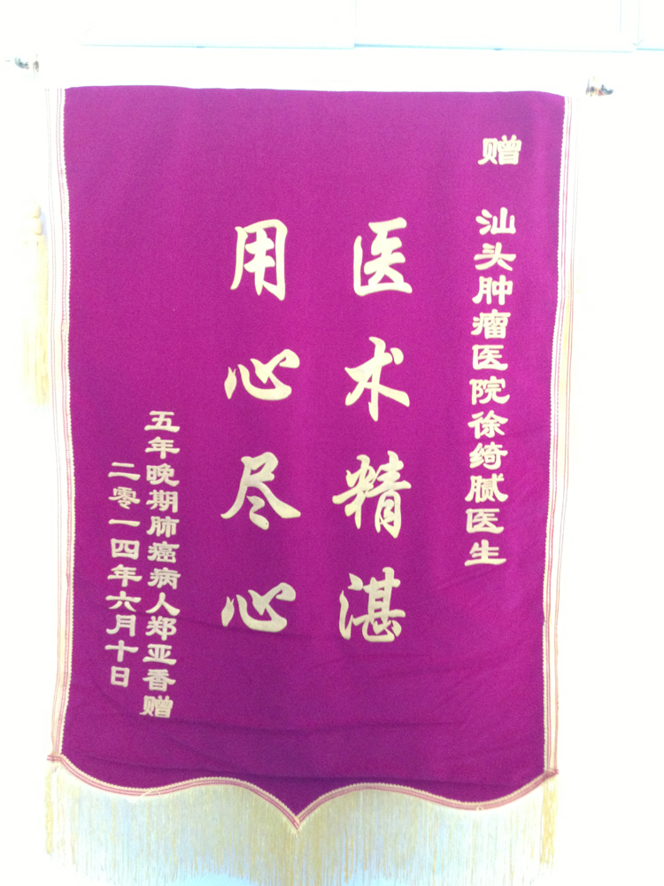 来自呼吸肿瘤、血液及淋巴肿瘤内科的锦旗(2014-6-18纪检收到)
