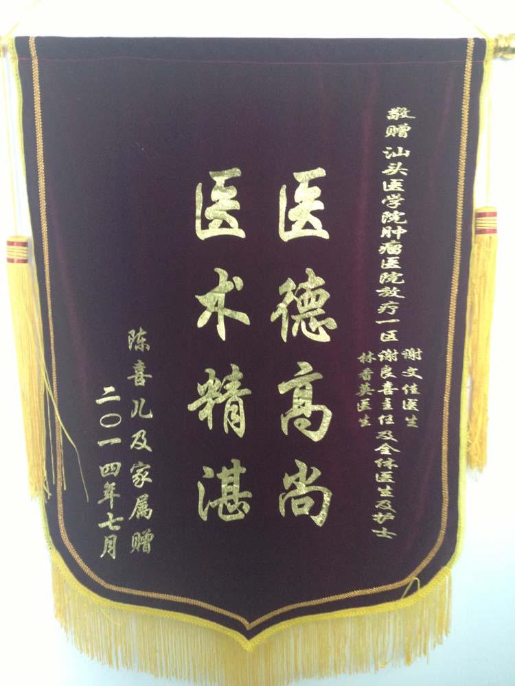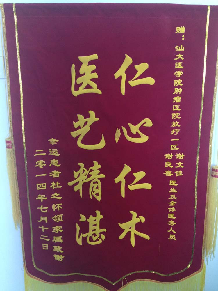 放疗一区两面锦旗(2014-9-1纪检收到)