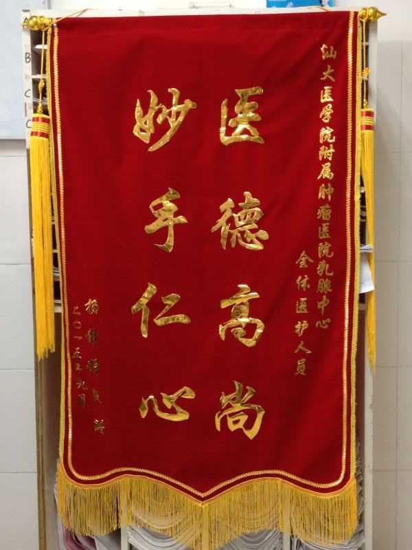 来自乳腺中心的锦旗(2015-9-23纪检收到)