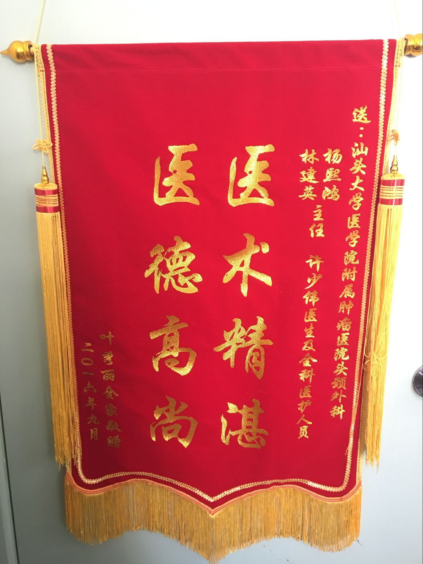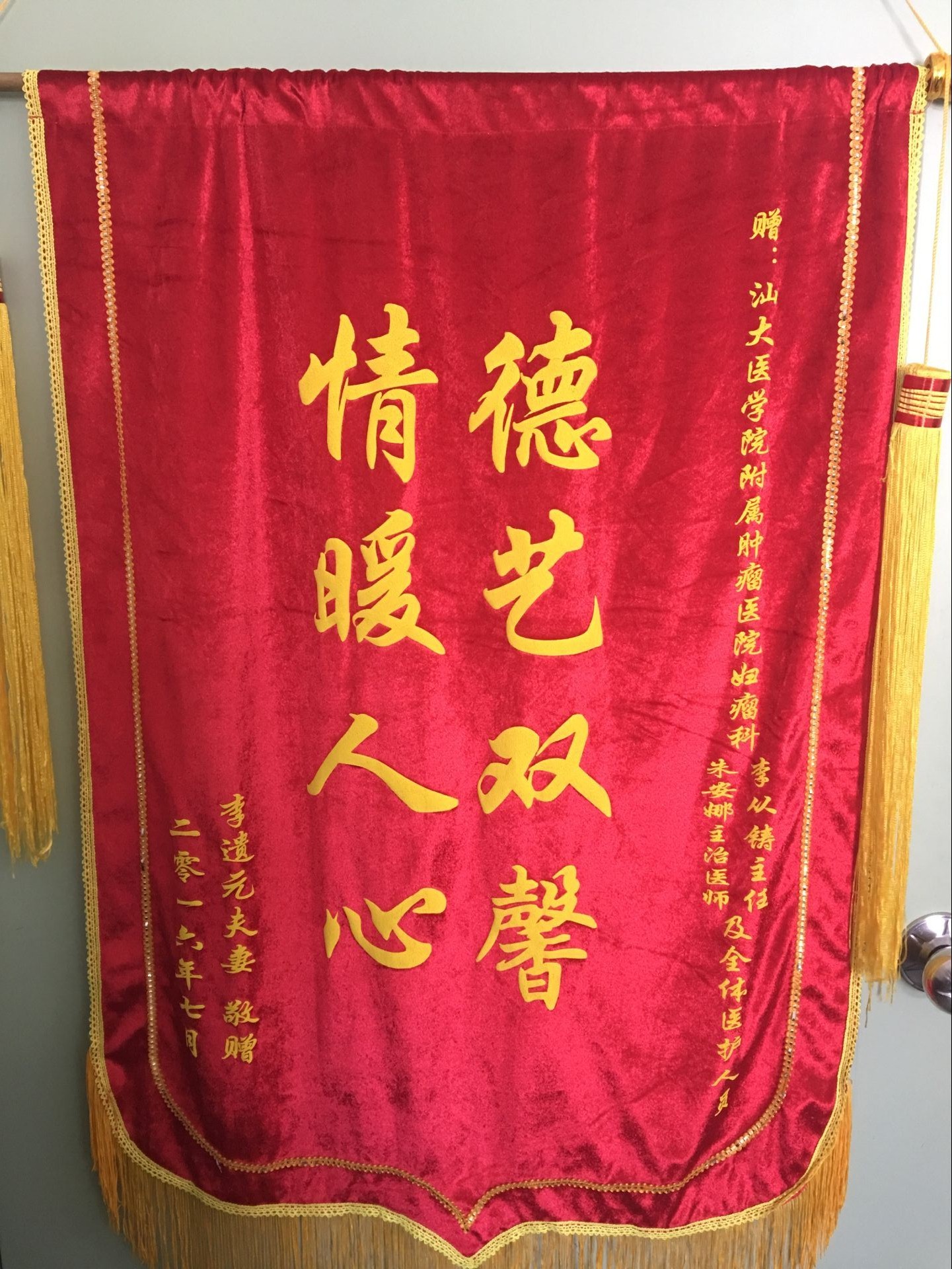 来自乳腺中心的锦旗(2016-10-18纪检收到)
