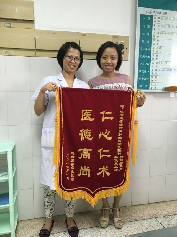 来自乳腺中心的锦旗(2016-10-18纪检收到)