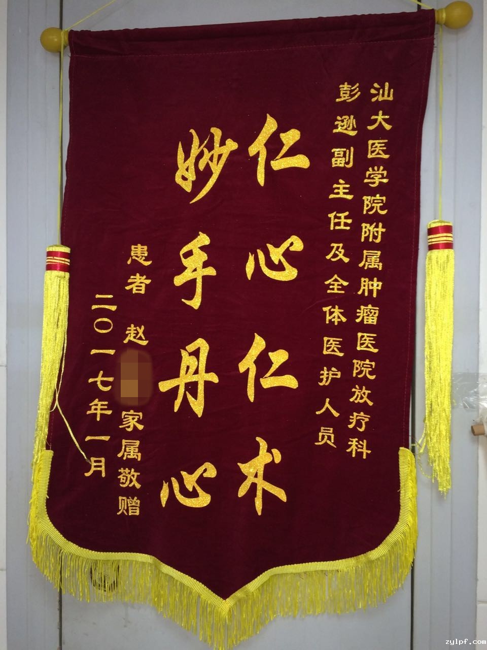 来自放疗一区的锦旗(纪检2017-1-23收到)