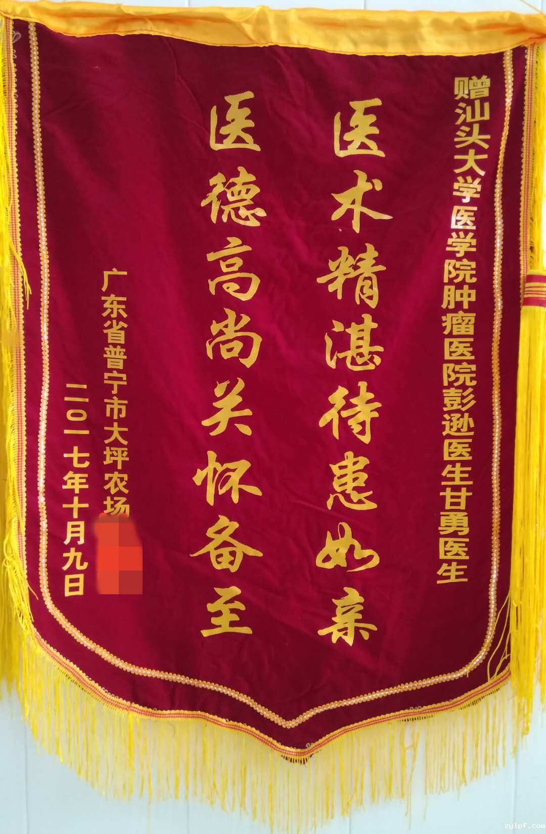 来自放疗三区的锦旗(2017-11-22纪检收到)