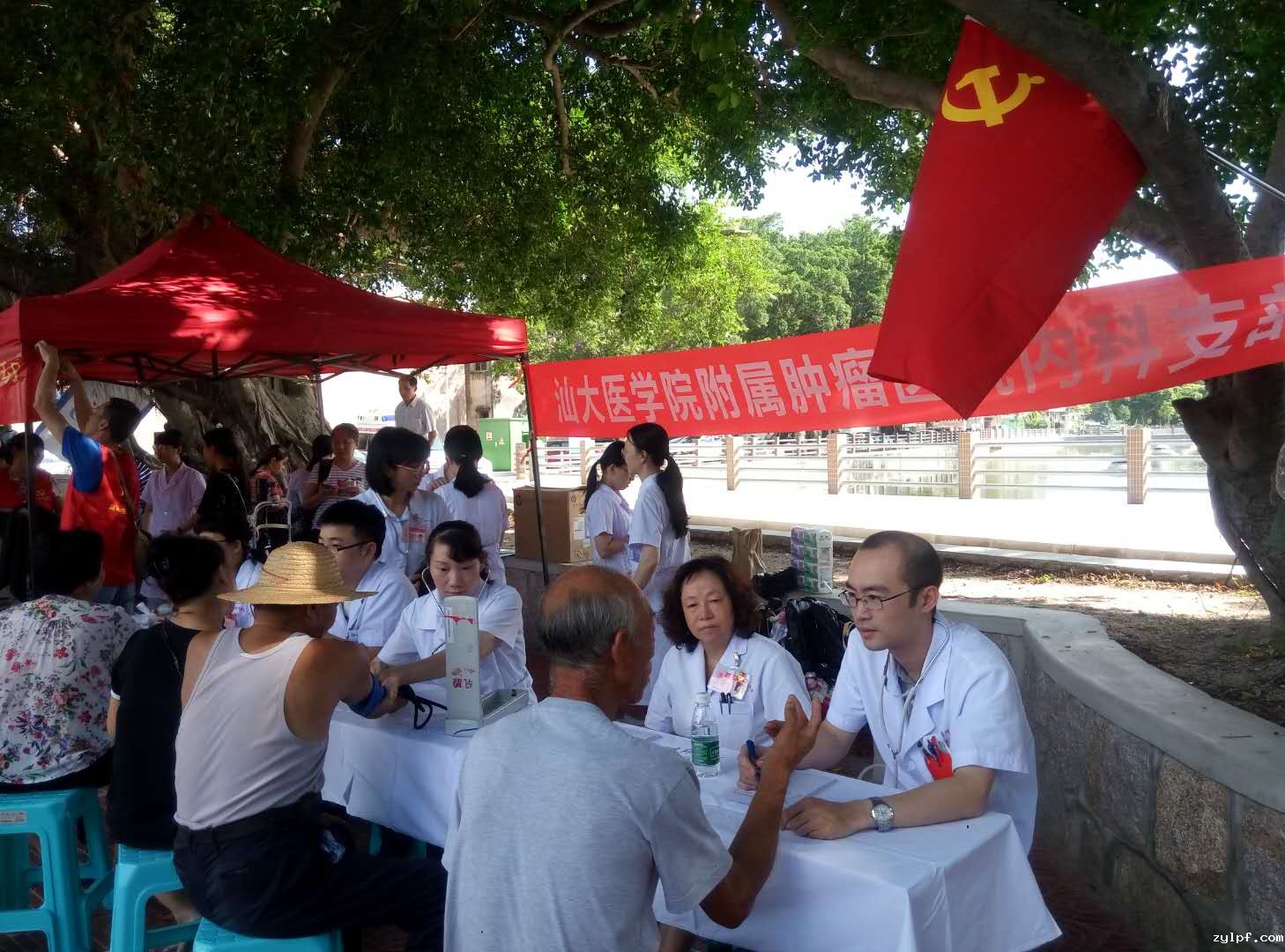 为认真贯彻落实党的十九大精神和习近平总书记重要讲话精神要求,不断满足人民群众对医疗服务和健康生活的新要求,7月21日,我院内科党支部携手汕头市蓝天义工协会党支部,到金平区鮀江街道木坑社区木坑广场开展爱心义医义诊公益志愿服务活动。 “在家门口就能体检,真是方便了我们这些腿脚不好的老人了。”义工大姐告诉我们,听说医生护士要来义诊,家住这一社区的大爷大妈们可高兴啦,一大早就在木坑广场等候我们了。参与本次义医义诊的人员由内科医生、护士及GCP工作人员等共15人组成。义诊从上午9点开始,至11点结束,很多附近的居民闻讯赶来,现场非常热闹。在2个小时的义诊过程中,医务人员免费为群众量血压和测血糖,耐心细致地解答就诊群众的各种问题,并为各个病患作出个体化诊疗方案,提出治疗建议及开具处方,同时对一些老年人常见病、多发病的预防知识和用药方法进行了耐心指导。 此次义诊活动一方面强化了群众的保健意识,另一方面也用实际行动展示了我院内科党支部医务人员良好的精神风貌,取得了预期的效果,真正做到了“党员干部受教育,人民群众得实惠”。接下来,支部将结合推进“两学一做”学习教育常态化制度化,把学习宣传贯彻党的十九大精神落实到自身岗位的具体实践中,进一步增强全体党员的服务意识,为建设健康中国贡献出自己的绵薄之力。 (通讯员:张勤)